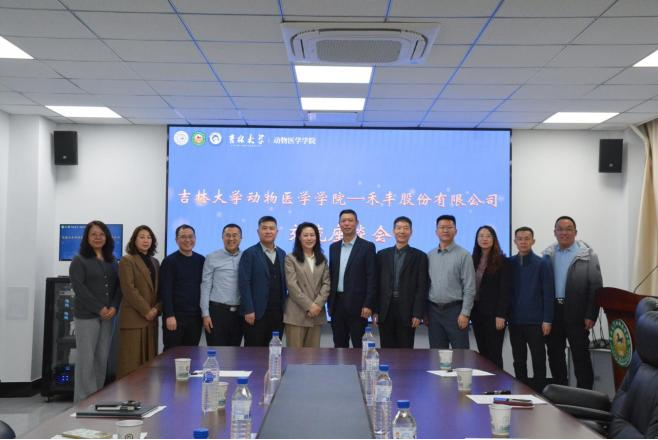 与禾丰股份有限公司在人畜共患传染病重症诊治全国重点实验室七楼会议室举行座谈交流会。禾丰股份有限公司副总裁邸国、龙吉区人力资源总监赵硕、吉林反刍事业线销售总经理严世帅;动物医学欧洲杯现场直播